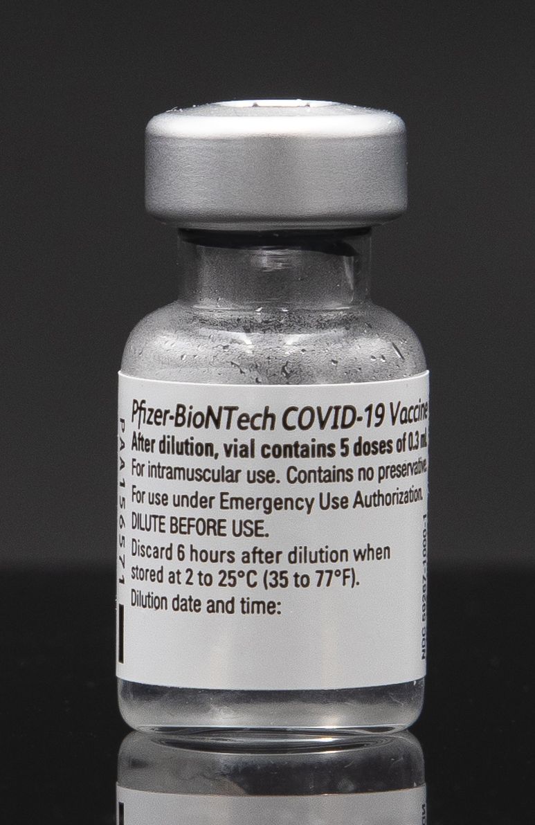 辉瑞新冠疫苗注射针剂瓶子。 (图片来源:维基百科)